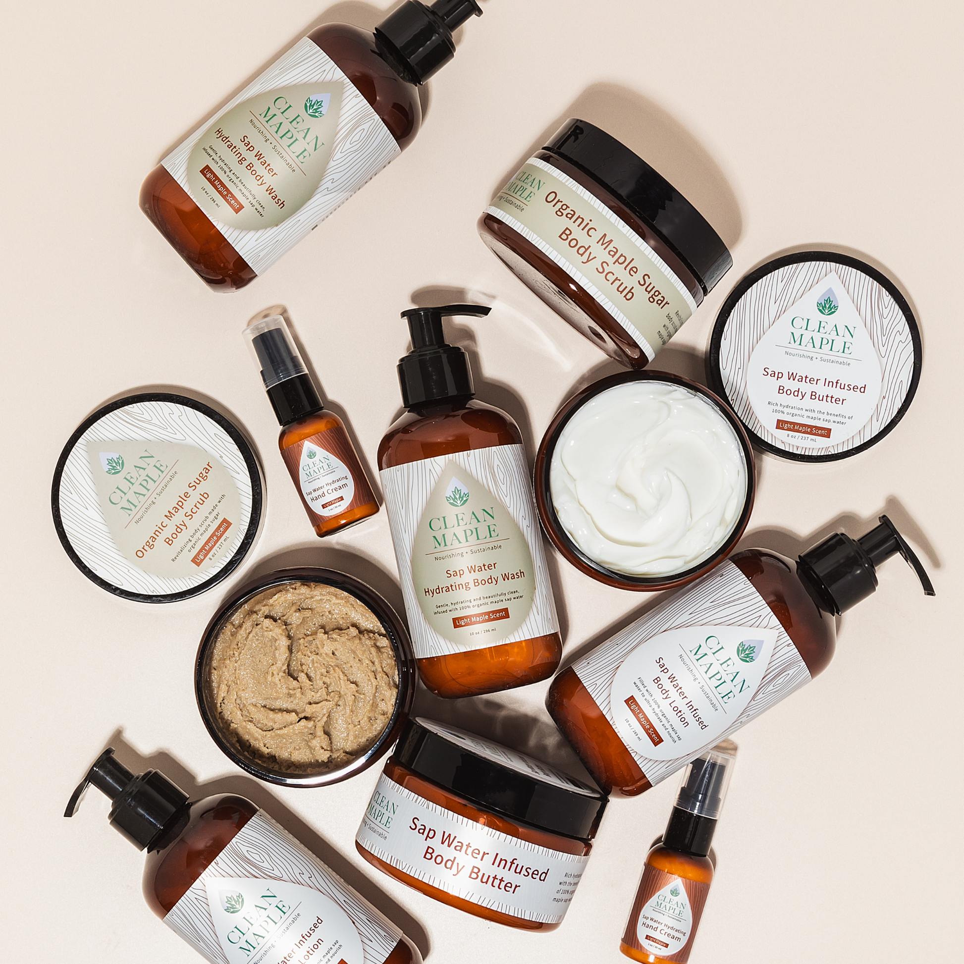 Lasts“This body butter locks in moisture all day long, leaving my skin silky and comfortable.”EMILY - All In!Using these maple sap water based ingredients consistently and in their different forms has worked wonders, leaving my skin feeling nourished and soft. I highly recommend this bundle for anyone looking for a complete body care regimen that's both effective and indulgent. Thank you for creating such a fantastic collection!JAIME
